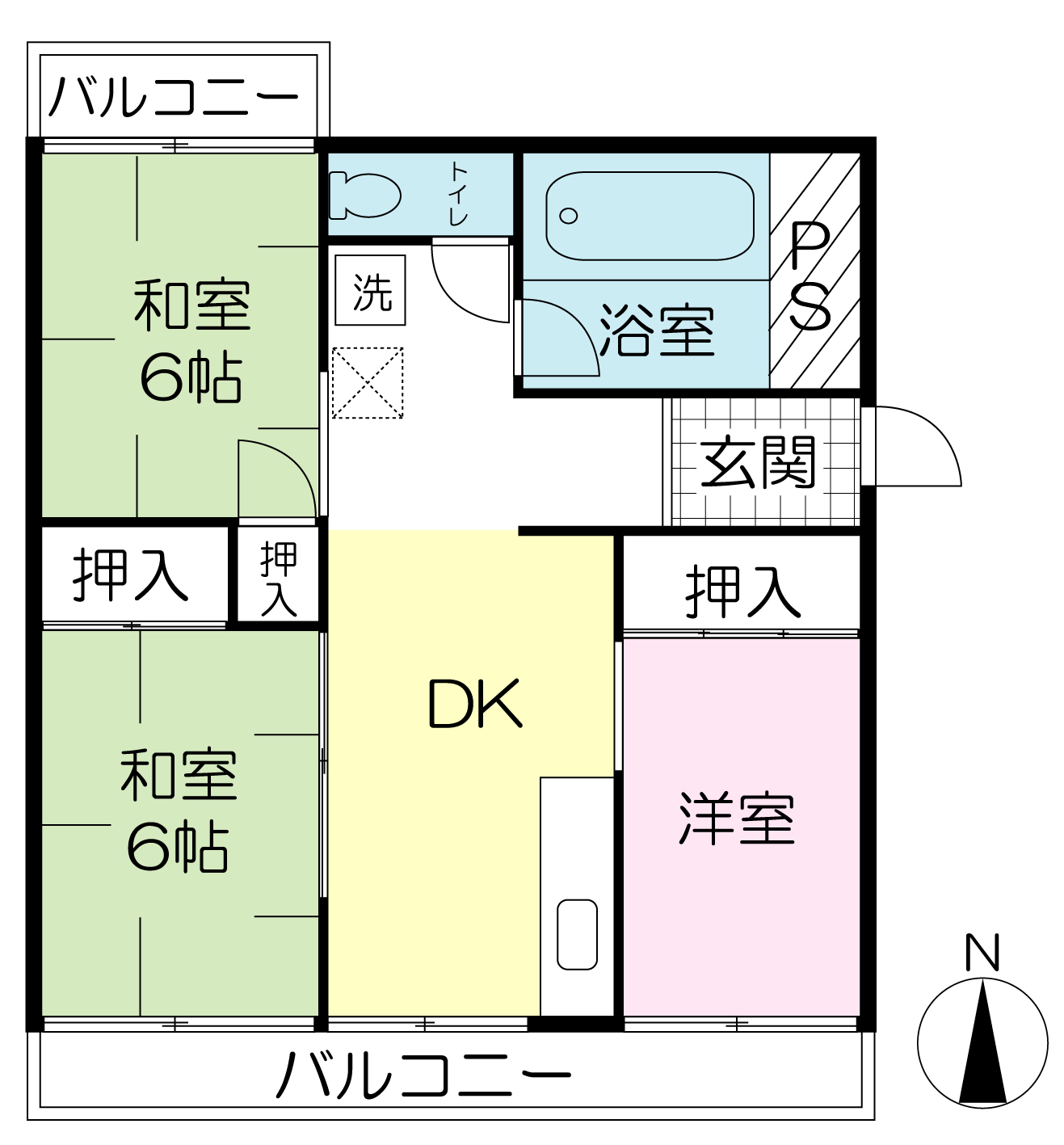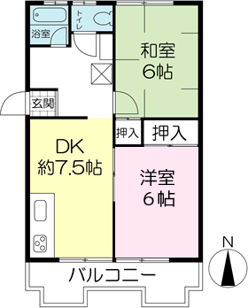 間取り:2DK(40.83㎡ 12.35 坪) DK7.5,洋6,和6